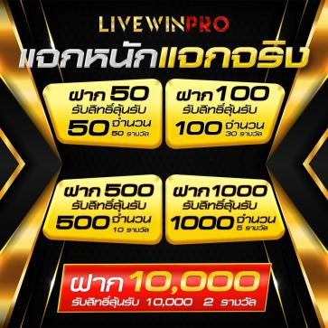สำหรับโปรโมชั่น LiveWinPro มีข้อเสนอที่น่าสนใจมากมาย ทั้งโบนัสต้อนรับสมาชิกใหม่ เครดิตฟรี และโปรโมชั่นคืนยอดเสีย ที่ช่วยเพิ่มโอกาสในการทำกำไรให้กับผู้เล่น อีกทั้งยังมีระบบสะสมแต้มที่สามารถนำไปแลกของรางวัลได้